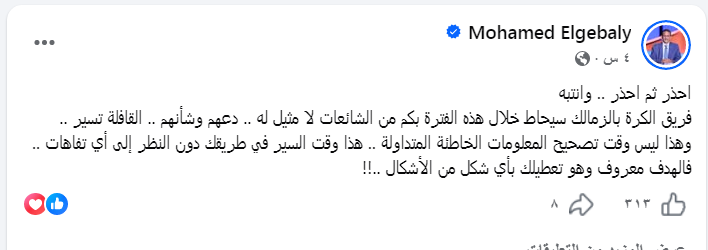 وعبر صفحته الشخصية على موقع التواصل الاجتماعى فيس بوك كتب محمد الجبالى محذراً :