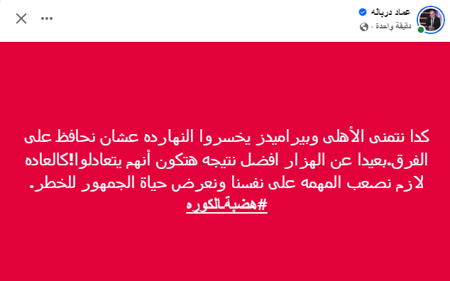 وعبر صفحته الشخصية على موقع التواصل الاجتماعى فيس بوك كتب عماد دربالة قائلاً :