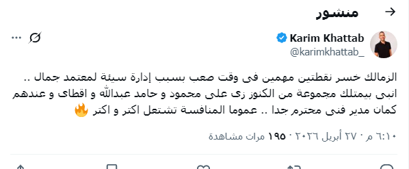 وعبر صفحته الشخصية على موقع التواصل الاجتماعى إكس كتب كريم خطاب قائلاً :