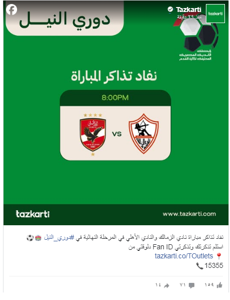أعلنت شركة تذكرتي المسئولة عن تنظيم دخول الجماهير فى المباريات التى تقام على أرض مصر عن نفاد جميع التذاكر الخاصة بمباراة القمة المرتقبة بين الأهلي والزمالك.